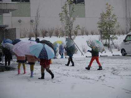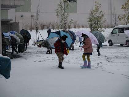 10日(金)、2年生が生活科の学習で雪の観察をしていました。