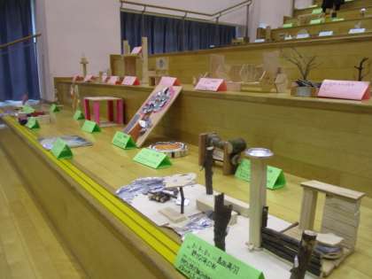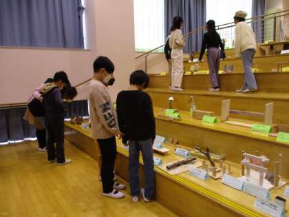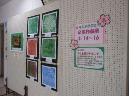 本日から16日(木)まで、第一多目的室とその前の廊下において、6年生が図工の授業で制作した作品が展示されています。