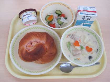3月14日の給食 公開日 2023/03/16 更新日 2023/03/16 ☆給食☆ いちごロールパン ホワイトシチュー 野菜のピクルス アイスクリーム 牛乳 6−1&6−3のリクエスト給食で「アイスクリーム」です。 ホワイトデーなので、ホワイトシチューにハートにんじんをちらしました♡ 給食