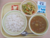 給食では、8人の調理員さんが力を合わせて、絵本のかぼちゃスープにも負けないおいしいかぼちゃスープを作ってくれました。