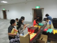食事係が夕飯のセッティングのお手伝いを行っていました。みんなのために、ご飯や汁物...