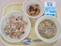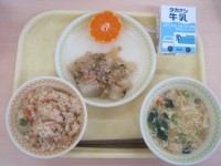 子ぎつねご飯ふろふき大根そぼろあんかけむらくも汁牛乳ふろふき大根は、やわらかく煮...