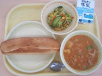 シナモントーストコーンサラダポークシチュー牛乳今日はシナモントーストです。シナモ...