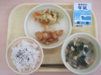 ごま塩ごはんいかのかりん揚げわさびドレッシングサラダ大根のみそ汁牛乳いかにはタウ...