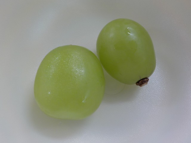 今日は秋のお彼岸にちなんで『二色おはぎ』を出しました。9月23日の秋分の日は、夏から秋へかわっていく日です。この日をはさんで7日間が「秋のお彼岸」です。お彼岸にはご先祖様へ感謝の気持ちを伝えるために、おはぎをお供えしたり、お墓参りをしたりします。ちなみに春にも同じ食べ物をお供えするのですが、花が咲く季節によって料理の名前も変わります。秋は「おはぎ」、春は「ぼたもち」です。今日はきなこと黒ごまのおはぎをひとつひとつ手作りしました。また、今日のくだものは「シャインマスカット」です。皮ごと食べられてとっても甘い、今が旬のぶどうです。
