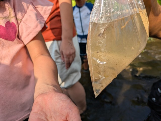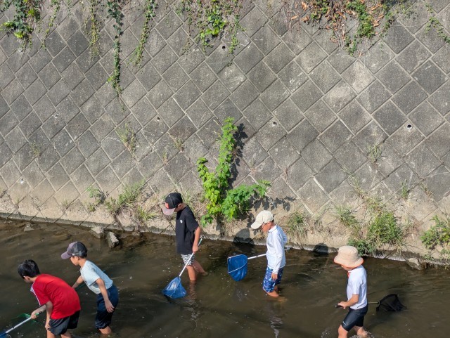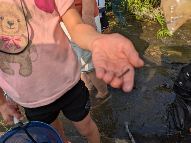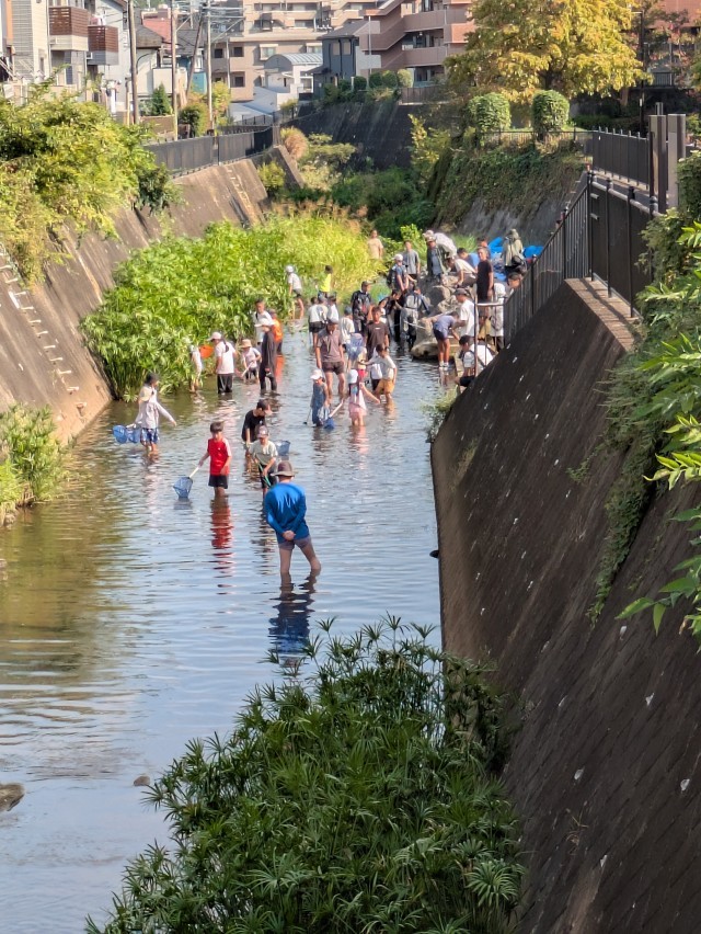 自然クラブで真光寺川に行きました。保護者の方々も多数参加してくださいました。お魚先生に同行してもらい、とても勉強になりました。