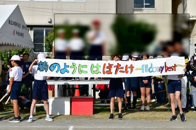 開会式 雨天で延期になっていた運動会が本日、『鶴のようにはばたけ!!』をスローガンに開催されました。秋らしい爽やかな空の元、皆元気に集まりました。平日開催にも関わらず沢山の保護者の方々も見学に来てくださいました。