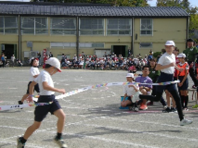 4年生の80m走は真剣そのもの。ゴール前の必死な表情は感動的です。