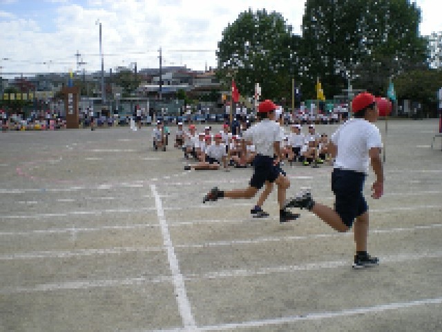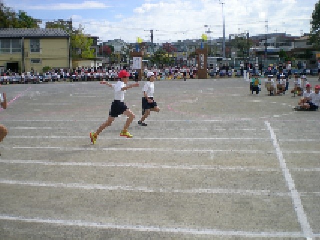 5年生から距離が伸びて100m走です。最後まで力いっぱい走り抜けていました。