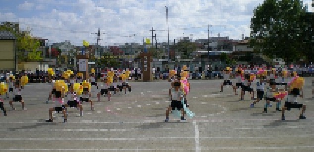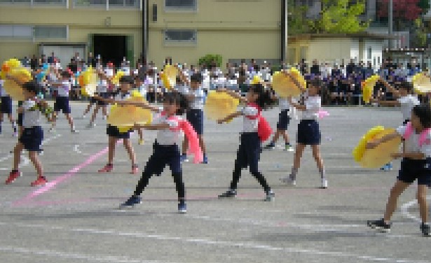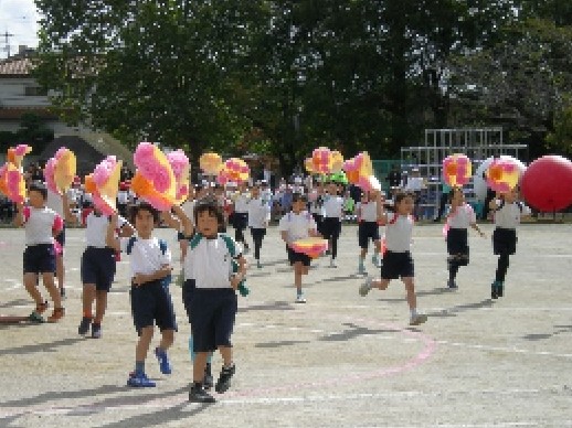 花笠とたすきを使って華やかに踊りました。練習を頑張っていたので、切れのいい動きでした。