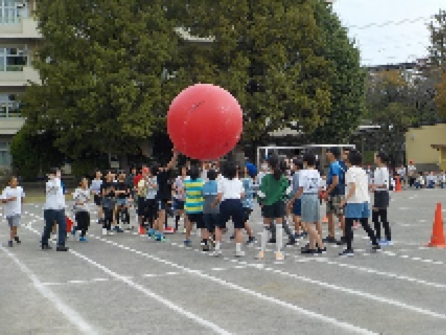 運動会全校練習風景②です。大玉転がしの練習は大盛り上がりです。
