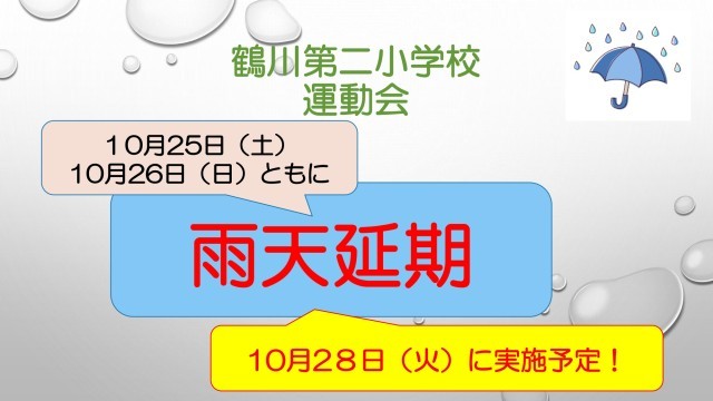 10月25日(土)、26日(日)運動会は雨天のため延期いたします。