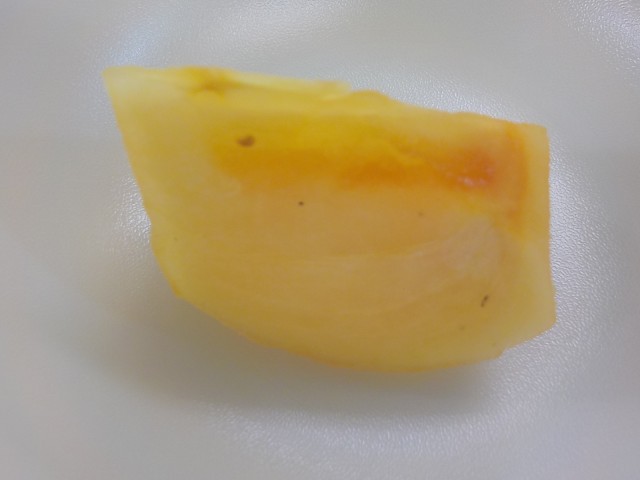 今日の『カレー』には、じゃがいも、たまねぎ、にんじんのほかに、さつまいも、かぼちゃ、れんこん、エリンギなどの秋の味覚がたくさん入っています。今日のくだものは『かき』です。かきには、ビタミンCという栄養がたっぷりふくまれていて、その量はみかんの2倍にもなるそうです。「ビタミンC」にはかぜをひきにくくする力があるので、食べると元気にすごすことができます。