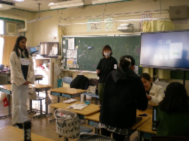 スキル科の授業で「留学生交流プロジェクト」を実施しました。大学生の留学生の方々に日本の文化を知ってもらおうと工夫していました。仲良く交流しています。