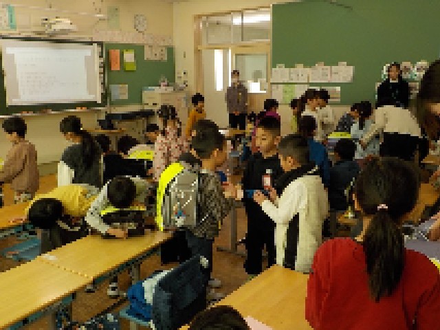 来年度入学予定の保育園・幼稚園児を迎えて、ランドセル体験、昔遊びを行いました。小学校のことを少しでも知ってもらい、入学をたのしみにしてもらえるようにするため、少しお兄さん、お姉さんになってアドバイスしています。早いもので、もうすぐみんな2年生ですね。