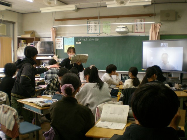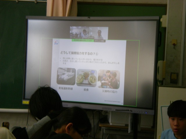 世界の未来と日本の役割についての授業で、JICAの先生をバングラデシュからオンラインでつなぎ仕事内容や国際協力について学びました。