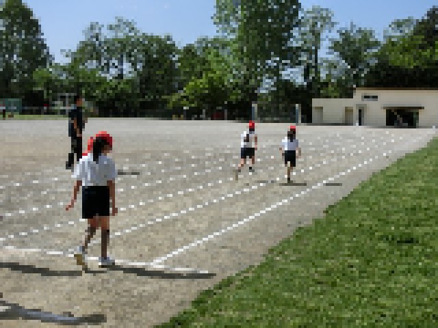 体力テストが5月から始まります。体力テストは、50m走・立ち幅跳び・20mシャトルラン・ソフトボール投げ・握力・ちょう座体前屈・上体起こし・反復横跳び、を測定します。今日は、50m走の記録を計りました。「去年よりもはやくなった、やったー。」と喜ぶ子供もいました。奥では、走り終わった子や走る順番を待っている子が投げる練習をしています。周囲に気を付けながら、柔らかい紅白球を使って練習をしていました。