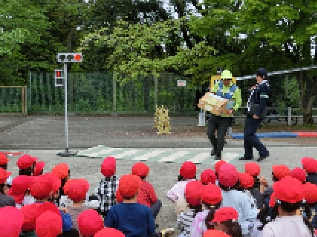 4月23日 交通安全教室が行われました。町田警察の方々が、横断歩道の渡り方を中心に1年生にお話と実演をしてくださいました。その後、保護者の方にもご協力をいただき、実際に横断歩道をみんなで渡る練習を行いました。子供たちは、真剣に話を聞くだけではなく横断歩道の渡り方も練習をしました。登下校だけではなく、日ごろから道路の歩き方を意識してほしいですね。