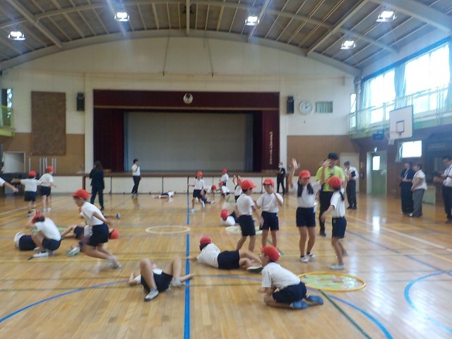 ジャングル探検をイメージして表現活動に取り組みました。探検カードに書かれているお題に対して即効的に動きや動き方の工夫を意識して表現を楽しみました。