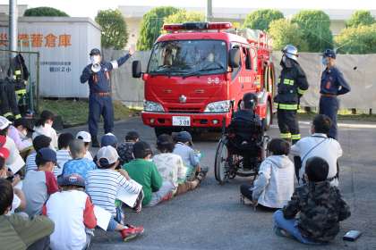 「普段、どんな仕事をしているのか」「ポンプ車の機能について」など、消防の仕事について詳しく教えていただきました。質問にもたくさん答えていただき、おかげで子供たちは充実した学習を行うことができました。