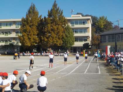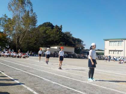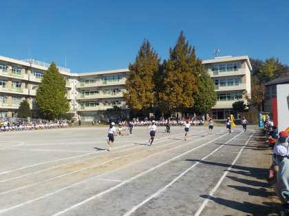 高学年になり、いよいよ100m走に挑戦。力強い走りを見せ、ゴール目指して頑張りました。