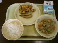 今日は節分です。明日は立春なので、冬と春の季節の分かれ目ですね。立春はお正月と同じで1年の始まる大切な日です。その前の日に、豆まきなどをして鬼(邪気・悪いこと)を追い払い、1年の健康と無事を願うのが節分の行事です。そこで今日は、豆まきに使ういり大豆を使った「節分ごはん」を出しました。「イワシの唐揚げ」も節分の「ヤイカガシ」にちなんだメニューです。イワシをカリッと揚げているので、小さな骨も食べられます。1年の健康を願いつつ、よくかんで食べましょう(給食つうしんより)
