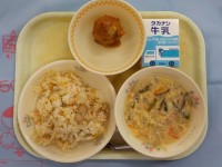 今日の給食 【食育の日:鹿児島県奄美大島】 奄美の鶏飯(まぜごはん・のり・スープ...