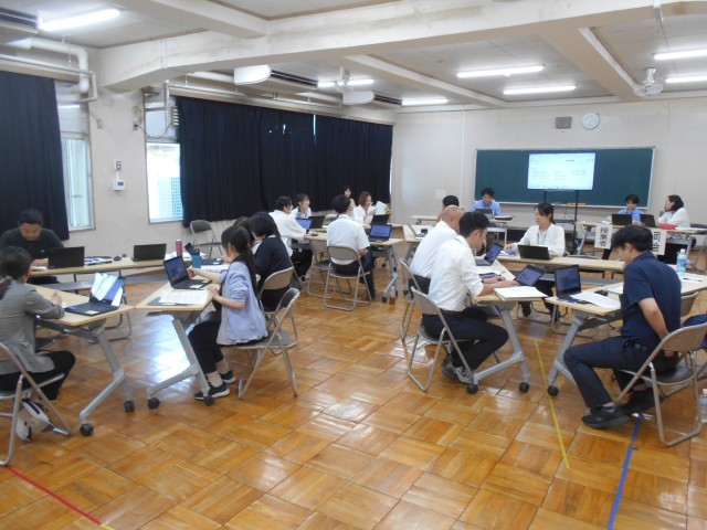 25日放課後、2年2組の研究授業後に、授業の協議会が行われました。全職員が小グループを作り、主題に沿った観点で授業について議論が交わされました。協議会後には町田市教育委員会の指導主事から、講話をいただきました。授業の講評から学習指導要領、現在中教審で審議されている次期学習指導要領まで深く幅広いお話を伺うことができました。