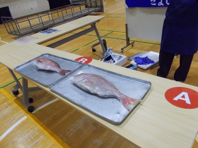実際に天然と養殖の鯛に触れて、どちらが天然か養殖かを当てるクイズもあり、