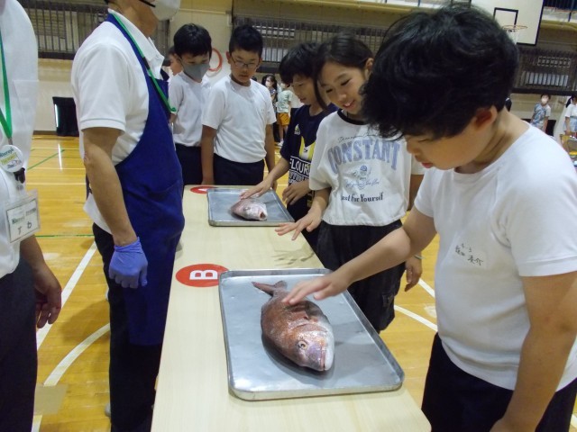 皆で本物の鯛をさわるという貴重な経験もさせていただきました。