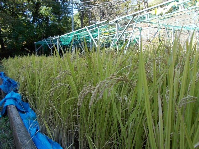 学校の敷地に5年生が植えた稲も、そろそろ収穫です。