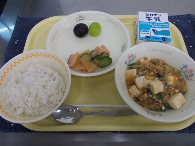 牛乳/ごはん/西湖豆腐/かぶの華風漬け/ぶどう2種
