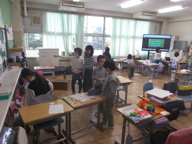 11日の1時間目、3年1組の教室で、学級活動の時間でクラスイベントが行われました。子供たちが学級会で話し合いを積み重ね、自分たちで企画を考え、準備を進めて本番を迎えました。当日、子供たちはそれぞれのお店を一生懸命運営し、みんなでイベントを盛り上げ、楽しんでいました。