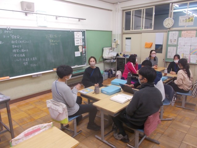 13日放課後、教職員OJTが開催されました。今回のテーマは「学芸会の指導方法」。3~4人ずつのグループを作り、各学年で考えていること、児童への演技指導や練習計画などお互いが持っているアイディアを出し合い、計画を深めることができました。