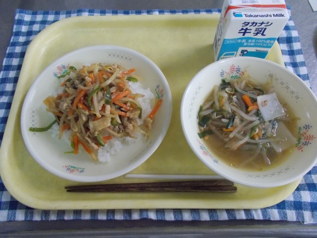 牛乳/ごはん/チンジャオロース/米粉のワンタンスープ