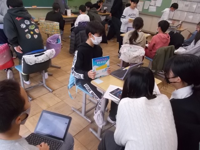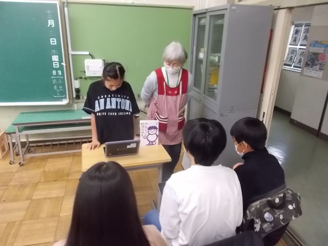 3日、6年1組教室で図書の学習が行われました。この日は図書指導員の方と一緒に「ビブリオバトル(お気に入りの本を紹介し合い、一番読みたくなった本を投票で決める知的書評合戦)」に取り組みました。はじめは数人のグループ内でお気に入りの本を紹介しあい、その後学級全体でも実施し、最後には学級チャンプを選びました。様々な本の魅力をみんなと楽しく知ることができる、素敵な時間でした。