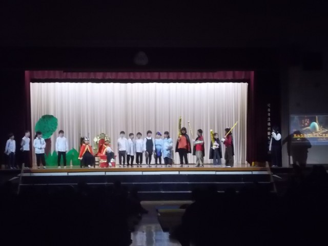 19日午前中、体育館にて学芸会(児童鑑賞日)が行われました。どの学年も、全校児童の前で堂々と演じることができました(5年生は25日に児童向けに上演します)。