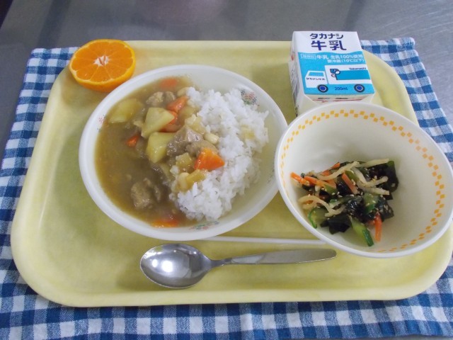 牛乳/米粉のポークカレー/海藻サラダ/ぽんかん