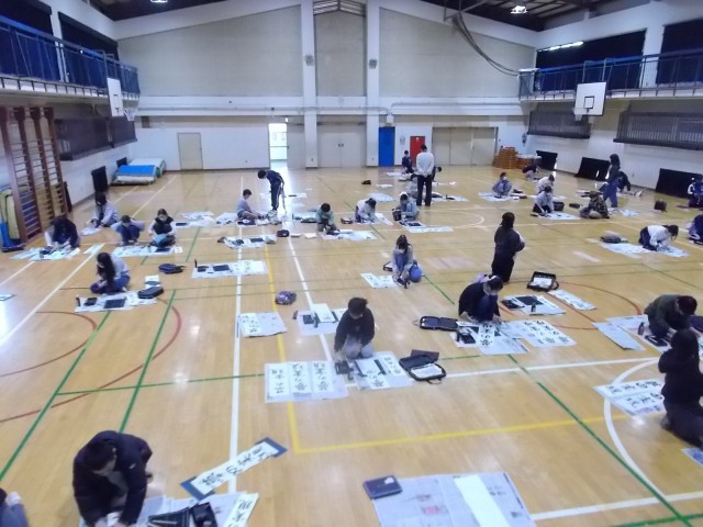 15日午前中、体育館にて6年生が席書会を行いました。1人1人が書初めに集中して取り組むことができました。