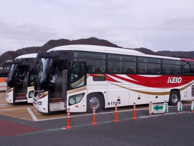 21日9時32分、中央高速談合坂SAに到着、トイレ休憩と新鮮な空気をたくさん吸い込みました。9時41分、再出発しました。2台のバス車内は、DVD鑑賞をしています。