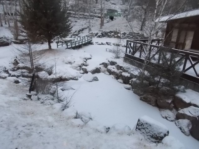 昨晩の雪で、休暇村の外は一面雪景色になりました!