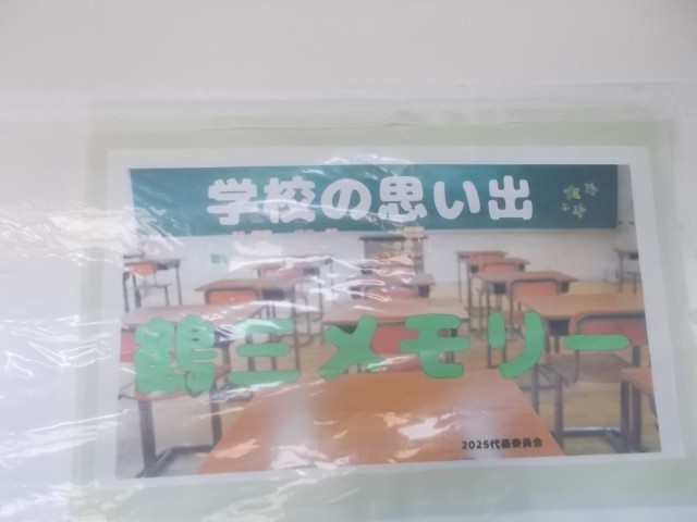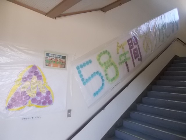1/26 学校の思い出「鶴三メモリー」を体育館階段に掲示。