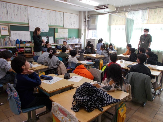 「あんか」「火鉢」「こて」「羽釜」「おひつ」「がんどう」「野良着」を持ってきていただき、実際に見たり触ったりしながら使い方を予想しました。その後、正しい使い方について説明していただき、子供たちはとても興味をもって聞いていました。昔の人の知恵に驚かされたようです。