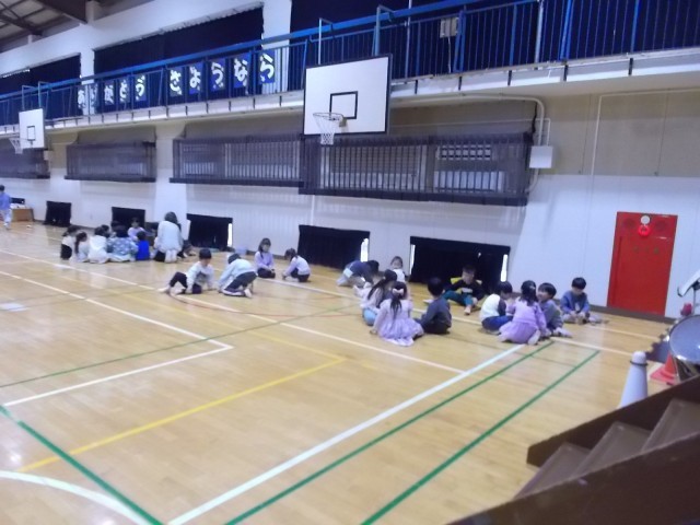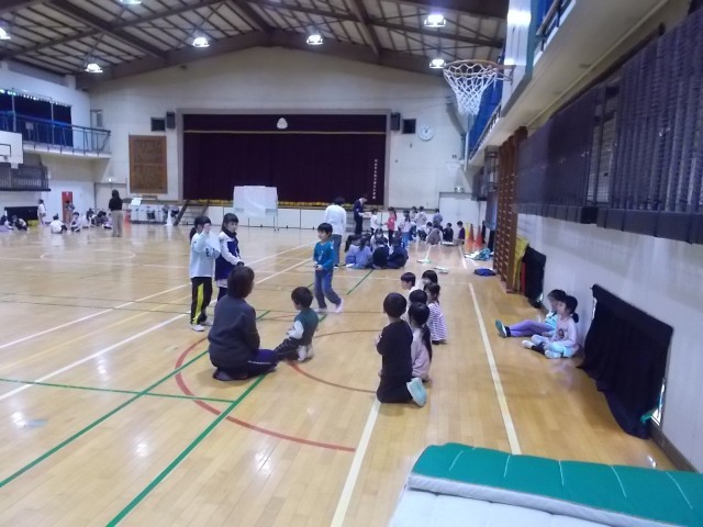 26日午前中、体育館にて1年生が近隣幼稚園園児の子たちと交流会を行いました。1年生が用意した遊びを、幼稚園児と一緒に取り組みました。
