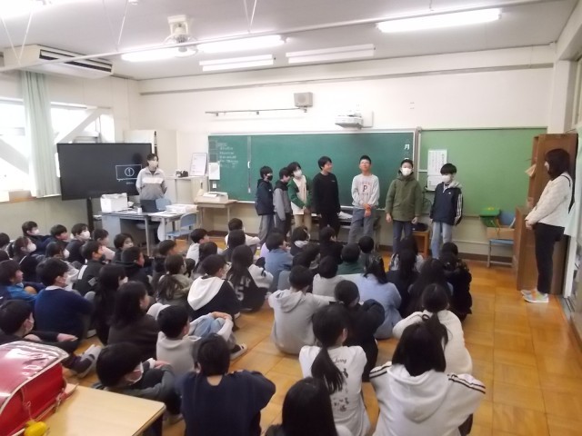 9日朝、校舎内各所で学年集会が行われました。6年生は卒業に向けての話、5年生は子供たちからの話などそれぞれ学年主任の先生を中心に進められました。