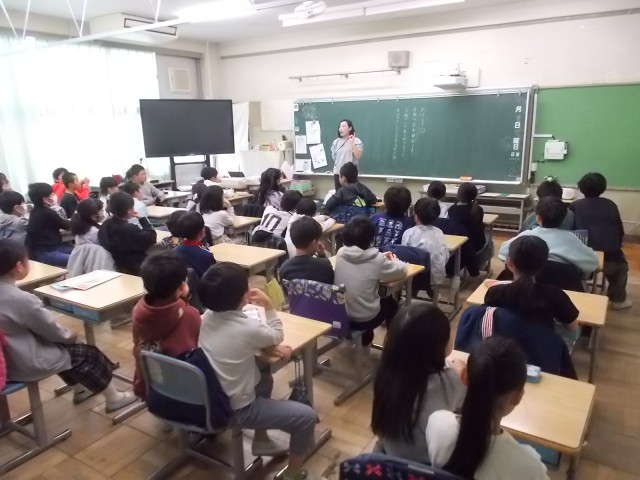 9日朝、校舎内各所で学年集会が行われました。どの学年も、先生の話にしっかりと耳を傾け、話を聞くことができました。