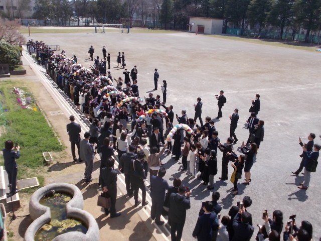 3/24 56年 卒業式後、卒業生見送り