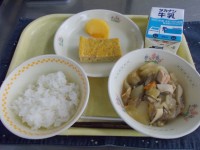 牛乳 鶏ごぼうピラフ 豆スープ フルーツポンチ