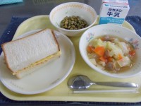 *今日の献立*牛乳/オムレツサンド/あおのりビーンズ/ポトフ今日の汁物はポトフでした。ポトフはフランスの家庭料理で、日本でいうおでんのような煮込み料理のことをいうそうです。今日は野菜やウィンナーを、じ...