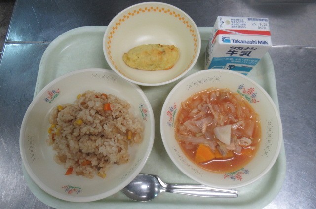 ガーリックライス 牛乳 ミネストローネ スイートポテト